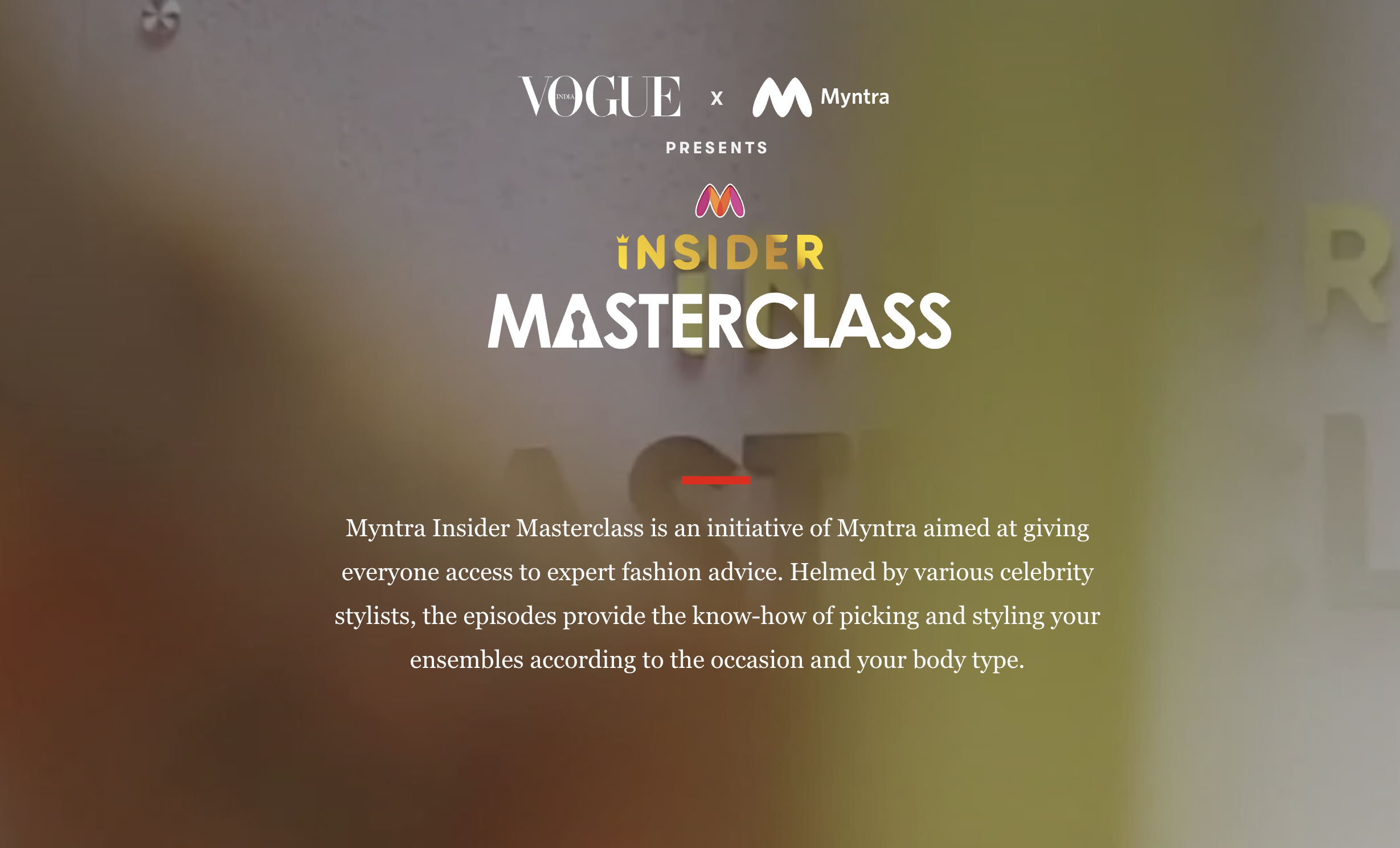 Myntra Fashion Masterclass is a series of online fashion workshops organised by Myntra, one of the leading fashion e-commerce companies in India.